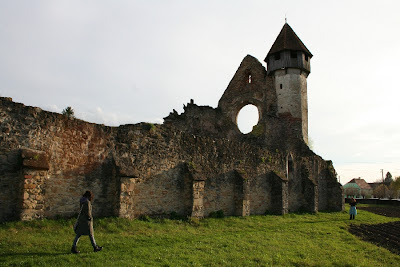 Da, este o ruina, nu, nu este abandonata. Cei care au ridicat-o au fost calugarii cistercieni. Comunitatea locala de sasi nu mai exista insa avem comunitatea locala de tigani (cool, right?) Mai avem si un preot reformat super carismatic care stie sa gestionezi aceasta comunitate. Biserica exista si functioneaza doar in zona altarului. Restul insa este o ruina bine intretinuta pe o pajiste tunsa si amenajata. De altfel preotul i-a pus pe cei dintre noi care fumasera sa-si ia mucurile de tigara de pe pajistea lui. How about that?